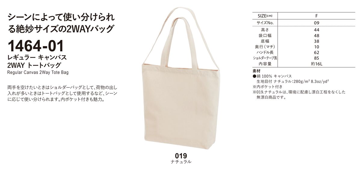 レギュラー キャンバス 2WAY トートバッグ:1464
