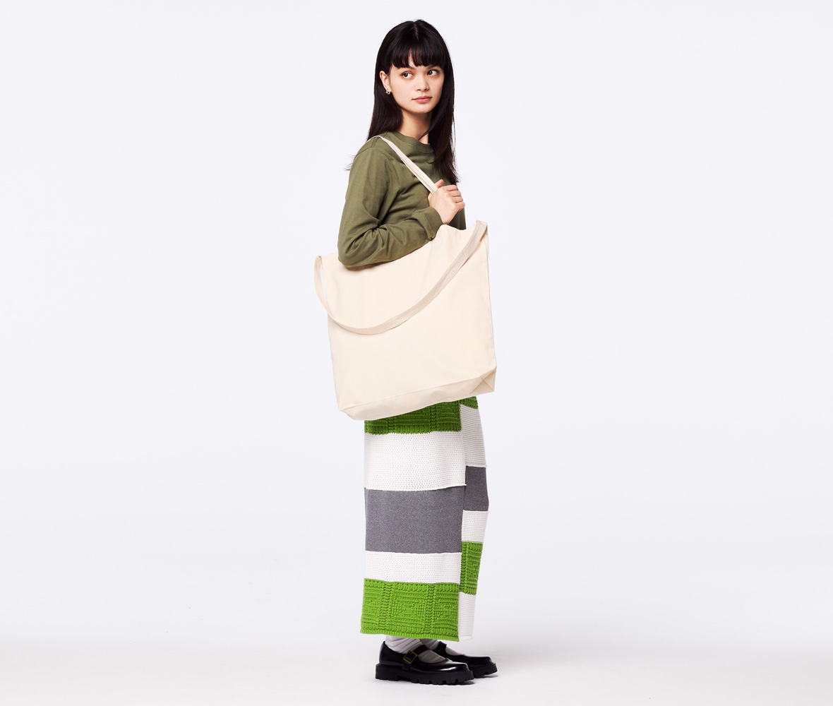 トートバッグとしてもショルダーバッグとしても使える便利な2WAYバッグ。8.3オンスのキャンバス生地は、さっと背負ったときに体にフィットするちょうど良い生地感。使いこむほどにくたっとしたかわいい雰囲気が出てくるため、エイジングも楽しんでほしい一枚です。両手を空けたいときはショルダーバッグとして、荷物の出し入れが多いときはトートバッグとして使用するなど、シーンに応じて使い分けられます。スマホなどの小さいものにもすぐにアクセスできる、内ポケット付きも魅力。背負ったときにこなれ感のある大きめサイズに設計しているので、プリントを大きく入れることが可能。コンサートやライブの物販アイテムとしてもおすすめです。