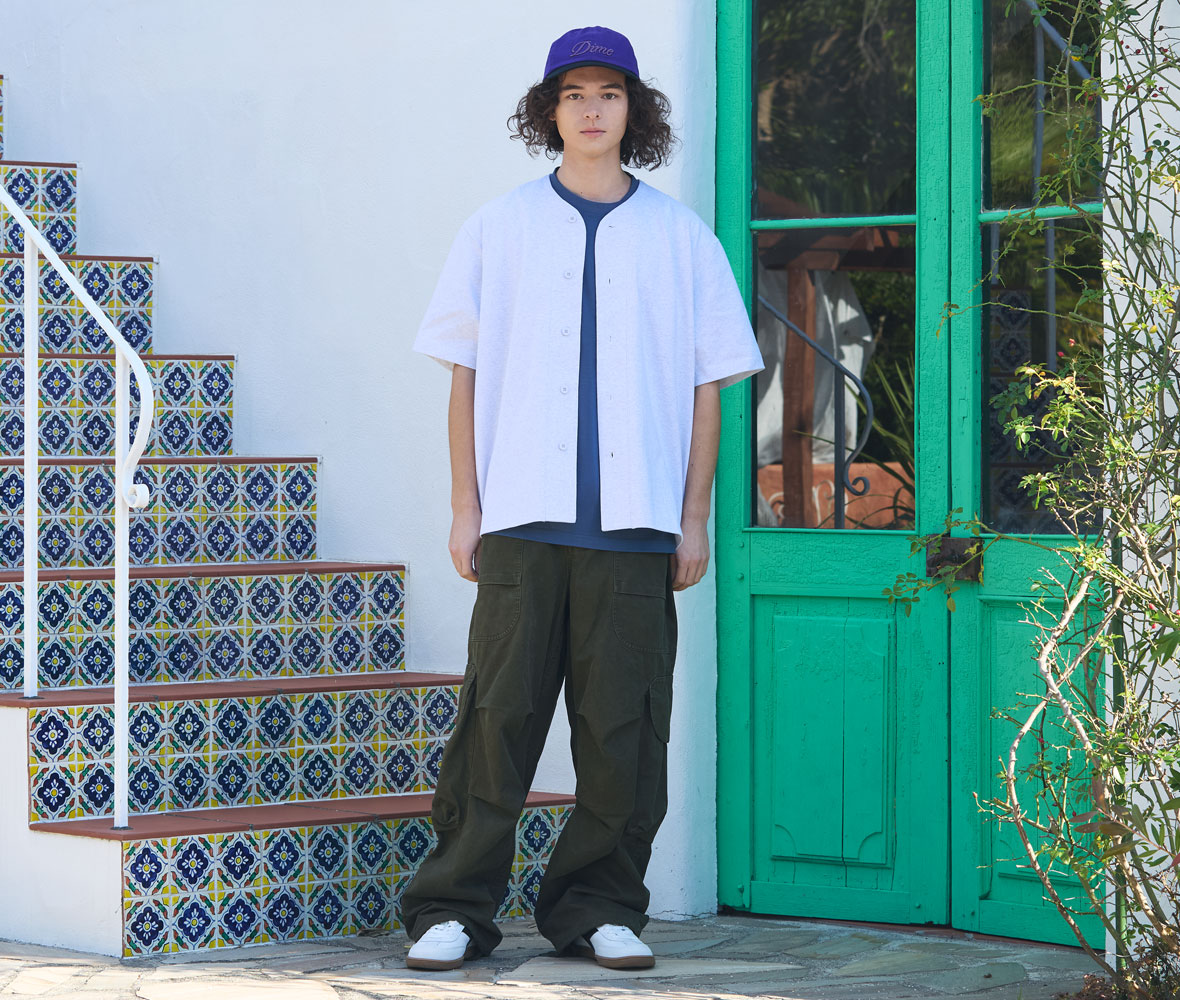 人気のベースボールシャツが天竺素材で仲間入り。8.5オンスの厚手のヘヴィーウェイトコットンを使用した生地とオープンエンド糸ならではのシャリ感のある風合いは、カジュアルさにこなれ感をプラスした一味違うスポーツミックスを楽しめること間違いなし。着用と洗濯を繰り返すことでより風合いが増し、エイジングを楽しめるアイテムに仕上がりました。サイズ感にもこだわり、一枚はもちろん、レイヤードもしやすいようゆったりめのシルエットに設計。また、身頃同色のマットな質感のボタンを採用し、シンプルさと高級感を同時に演出。細部までこだわりが詰まった今の気分にぴったりなベースボールシャツです。