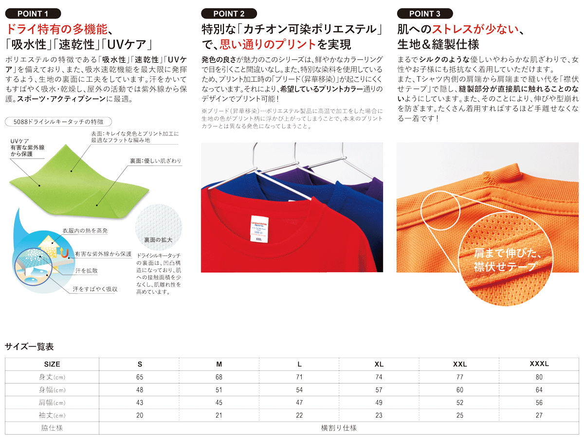 なめらかな肌触りでストレスフリー発色の良さも魅力のドライTシャツ