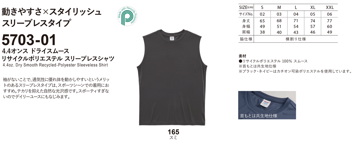 4.4オンス ドライ リサイクルポリ スリーブレス:5703