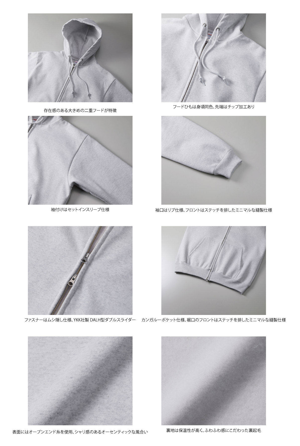 15.0オンスという超厚手生地で仕立てられた、ボリュームたっぷりのパーカ。表糸にはオープンエンド糸を使用しており、アメリカンオーセンティックな雰囲気が楽しめます。また、シルエットにはトレンドを色濃く反映。アームホールの大きさや袖の長さ、肩落ちなどのバランス感を調節し、大きすぎない絶妙なゆったり感を実現。袖や裾に生まれるほどよいたまりが、今っぽさを存分に演出します。冬はもちろんのこと、ミッドシーズンにはさっと羽織れるアウター代わりとしても活躍。3シーズン通してヘビロテ必至のアイテムです。寒い季節に手がすっぽりおさまるよう、大きめにあつらえたカンガルーポケットも、さり気ないこだわりポイント。