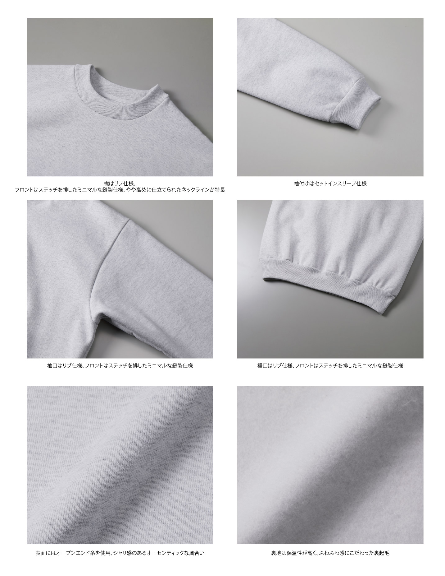 ゆったりとしたリラックス感のあるサイジングにこだわった一着。大きめにとられたアームホール、ボリューム感のある袖まわりがこなれたムードを演出します。「マグナムウェイト」の名にふさわしい15.0オンスの極厚生地は、保温性抜群の裏起毛仕様。寒さ際立つ真冬の心強い味方に。生地の表糸にはオープンエンド糸を使用したことで、シャリ感とラフな雰囲気も楽しめます。表面に見えるステッチを可能な限り排したミニマルなデザインなので、ストリートはもちろんのこと、さまざまなスタイリングにマッチ。シンプルで普遍的なアイテムだからこそ、シルエットから縫製仕様までこだわりが際立つ逸品です。