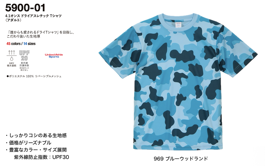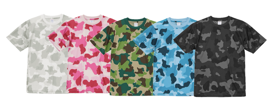 大人気!吸汗速乾性とコストパフォーマンスに優れた、アクティブシーンに最適な定番ドライTシャツの5900のカラー迷彩柄シリーズ。