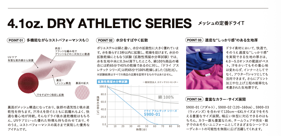 最適な厚み: 「4.1オンス」という軽やかで薄手の生地感ながら、スポーツやトレーニングでもしっかり使える耐久性を備えています。