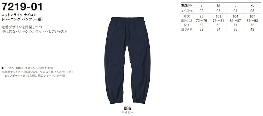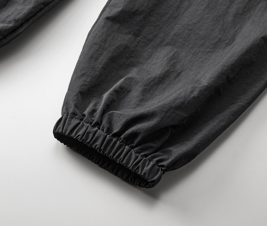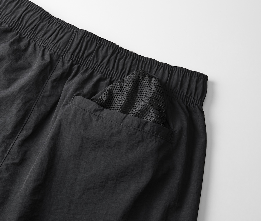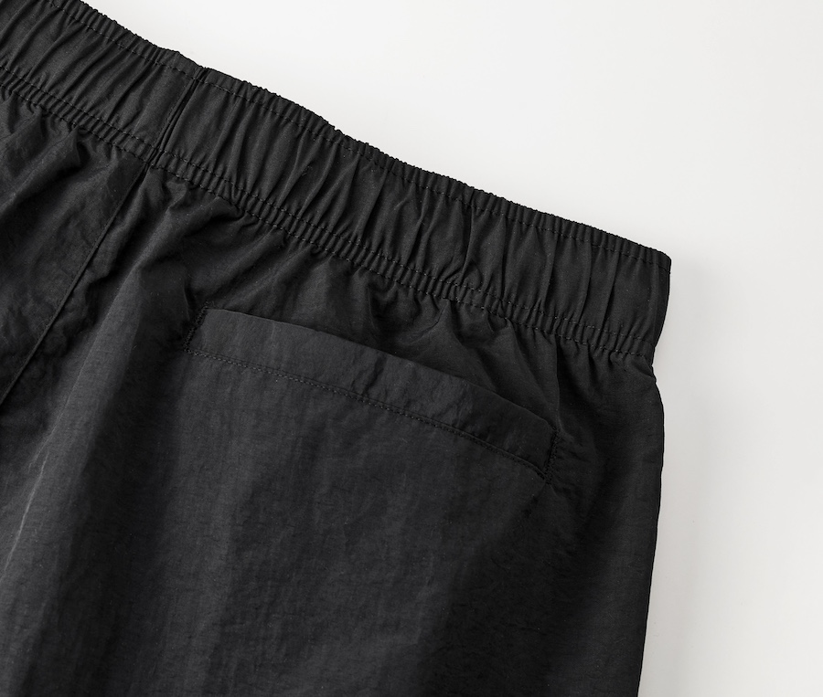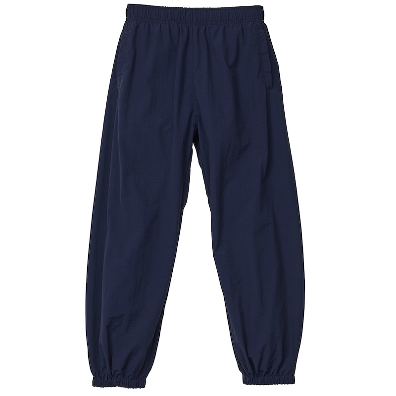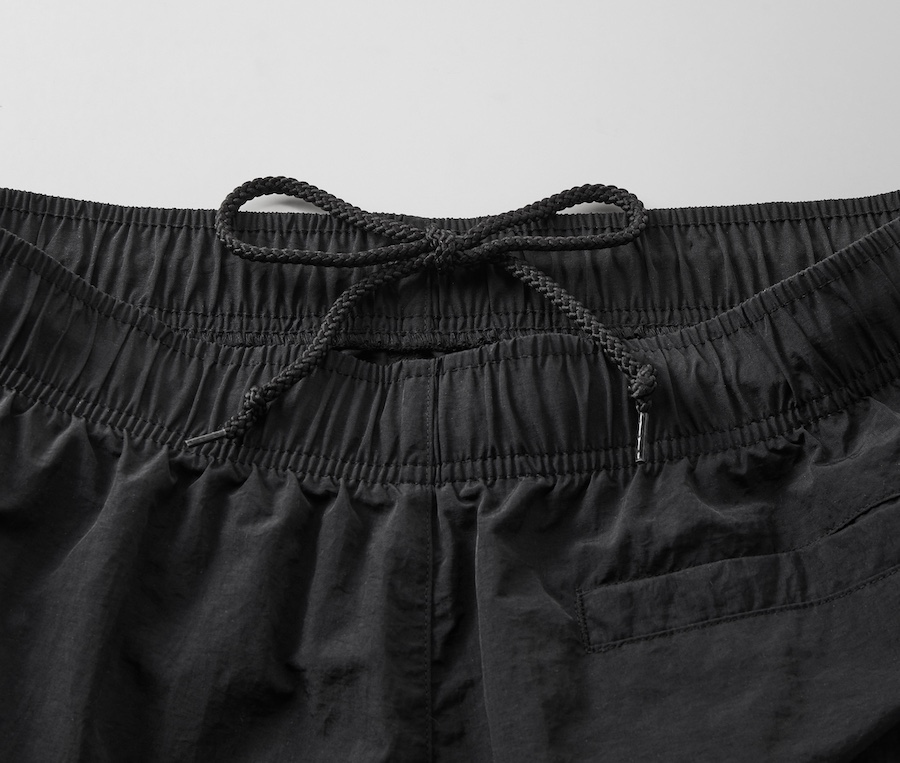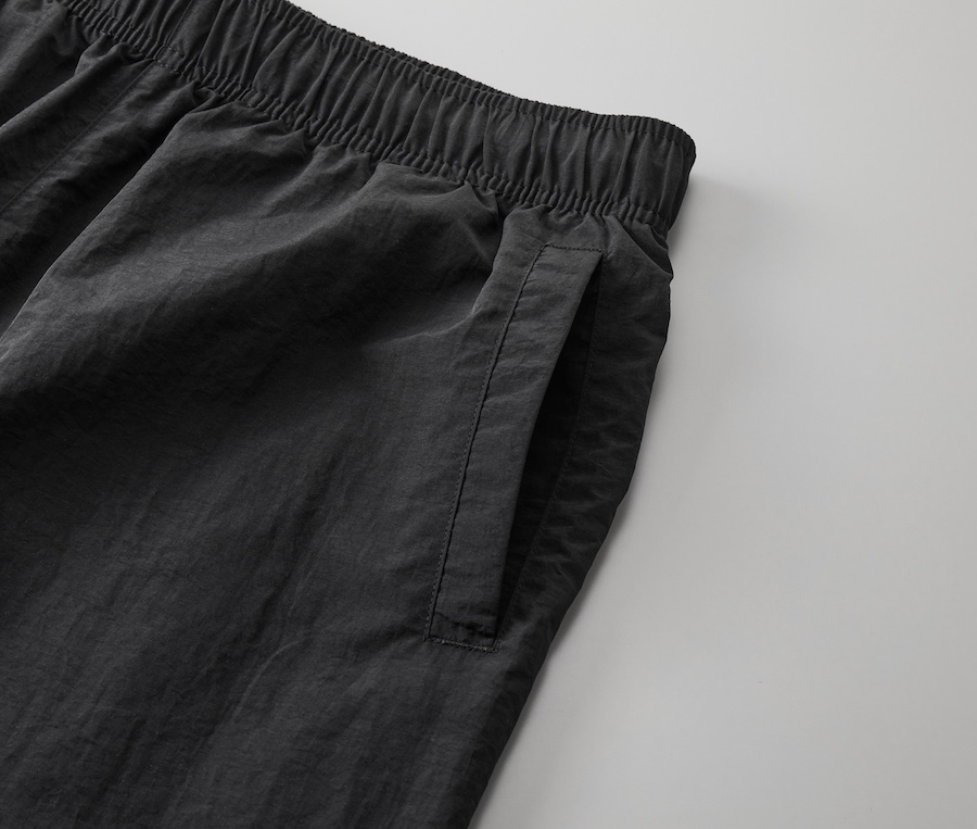 タフなナイロンをコットンのように加工して織り込んだ、やわらかな生地が魅力のトレーニングパンツ。