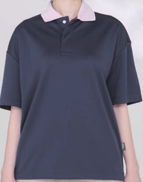 洗練されたネイビーベース: ネイビーを基調とし、襟元にアクセントカラーを配したデザイン。清潔感とプロフェッショナルな印象を与えます。