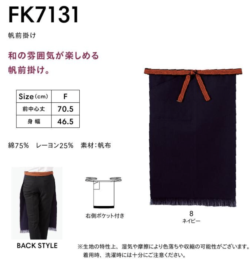伝統的なデザイン: 腰に巻いて前を覆う「前掛け」スタイルで、居酒屋、酒屋、和食店などの和風なユニフォームに最適です。