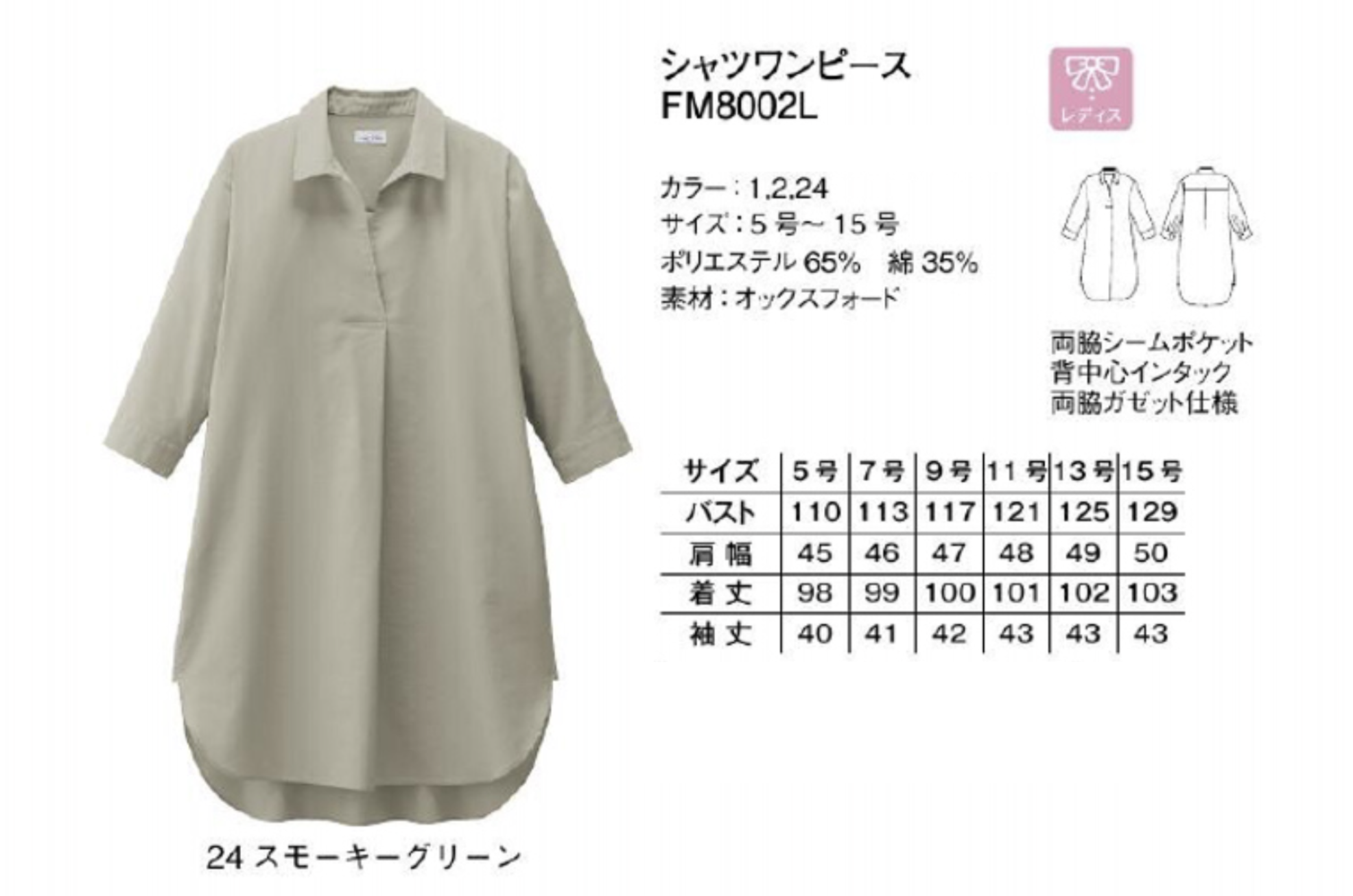 ナチュラルな風合いのオックスフォード生地を使用した、カフェやレストランなどの飲食店・サービス業向けの女性用ユニフォームです。