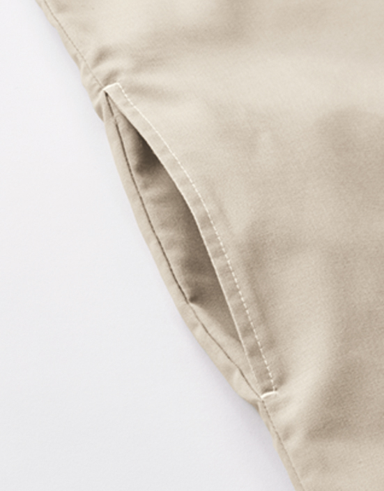 シームポケット: 両脇に目立たないポケットが付いており、スッキリとした見た目と利便性を両立しています。