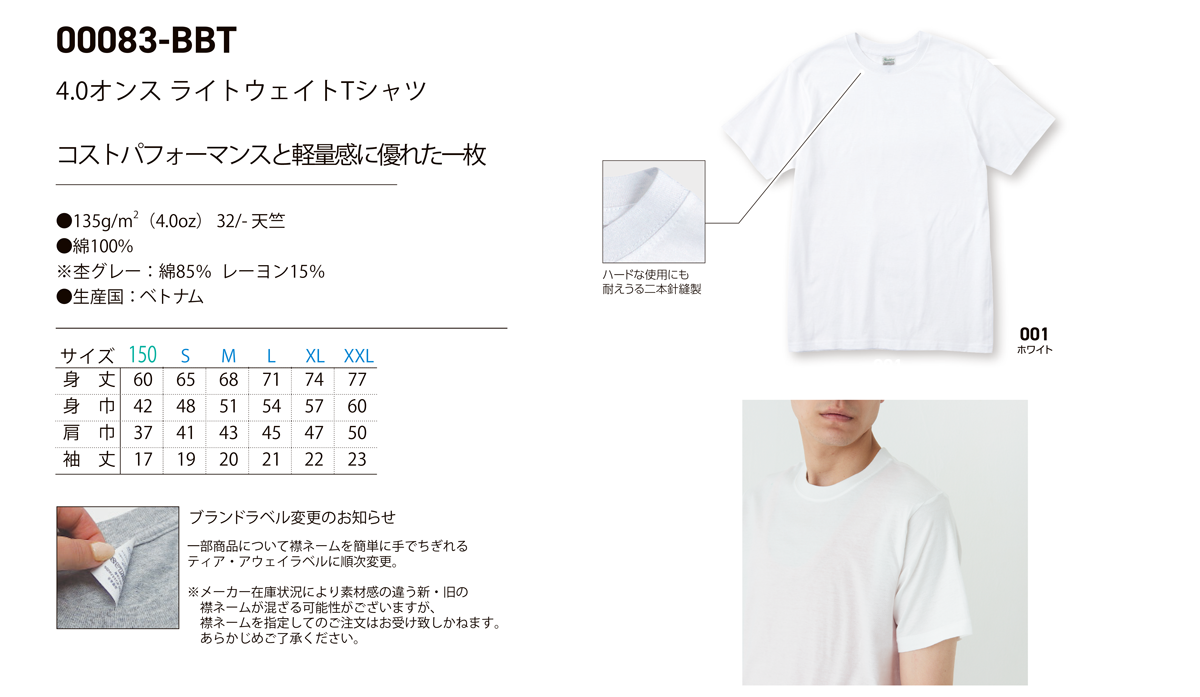 4.0オンス BBT ライトウェイトTシャツ:00083