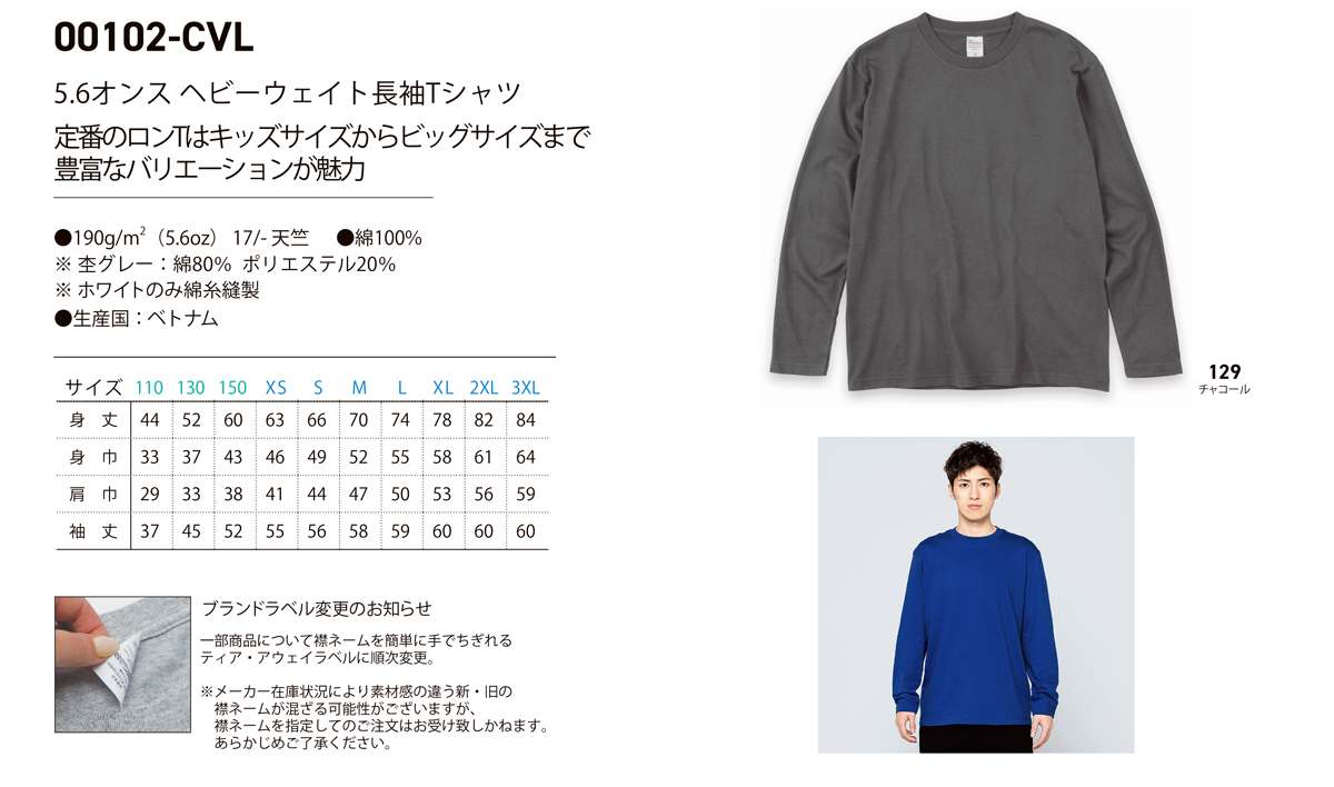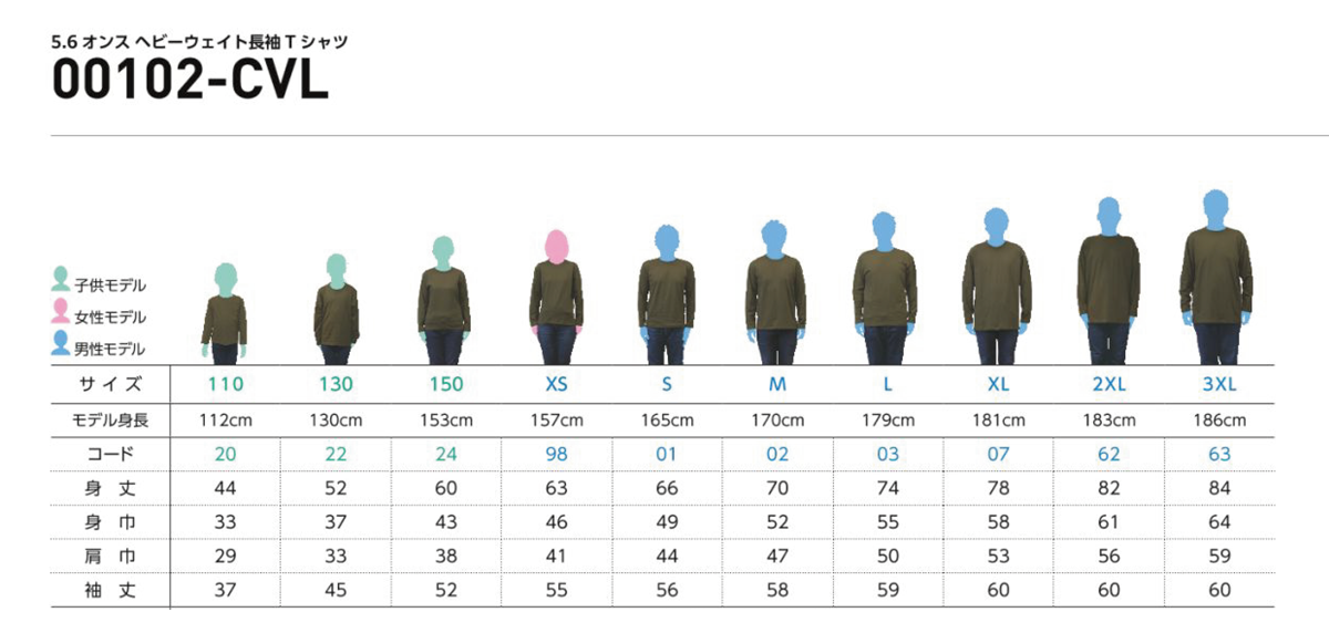 5.6オンス CVL ヘビーウェイト長袖Tシャツ:00102