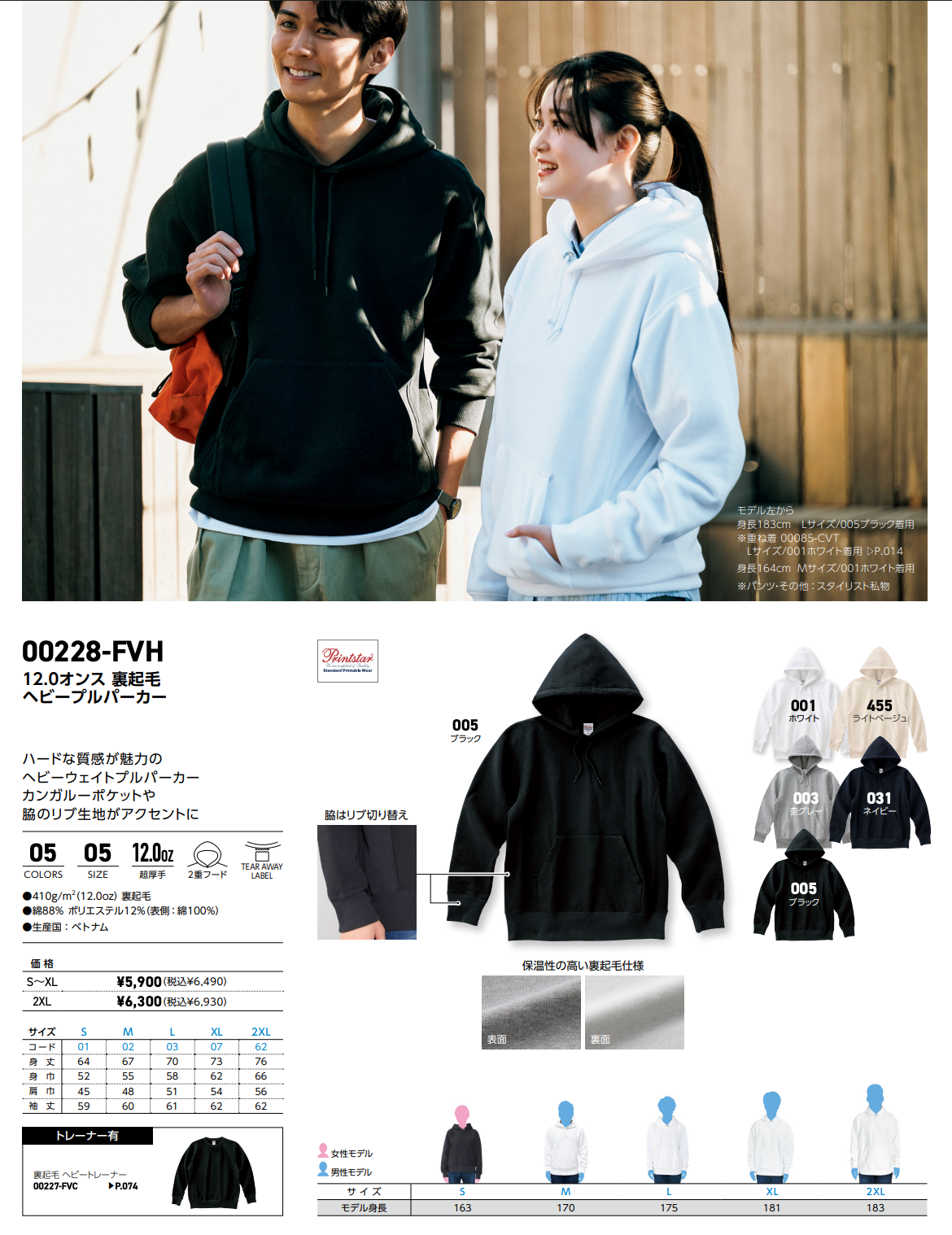 FVZ 12.0オンス 裏起毛ヘビージップパーカー:00229