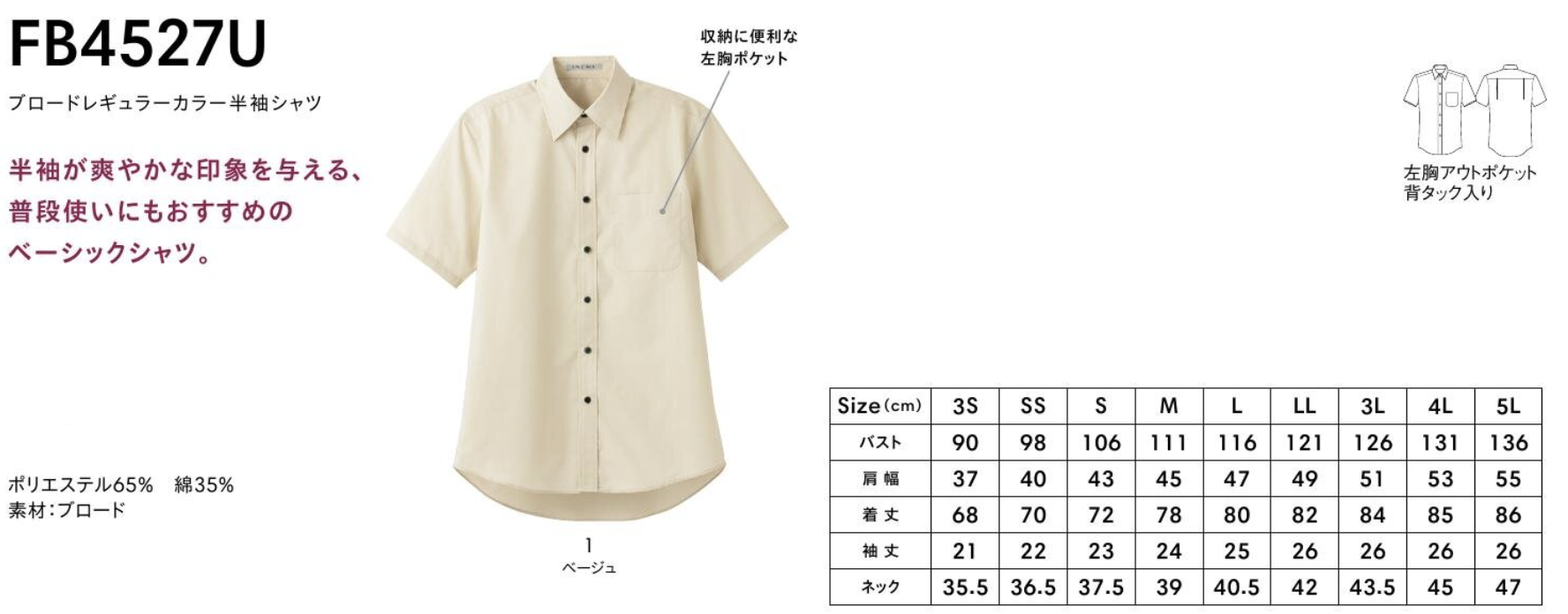 ブロードレギュラーカラー半袖シャツ:FB4527U