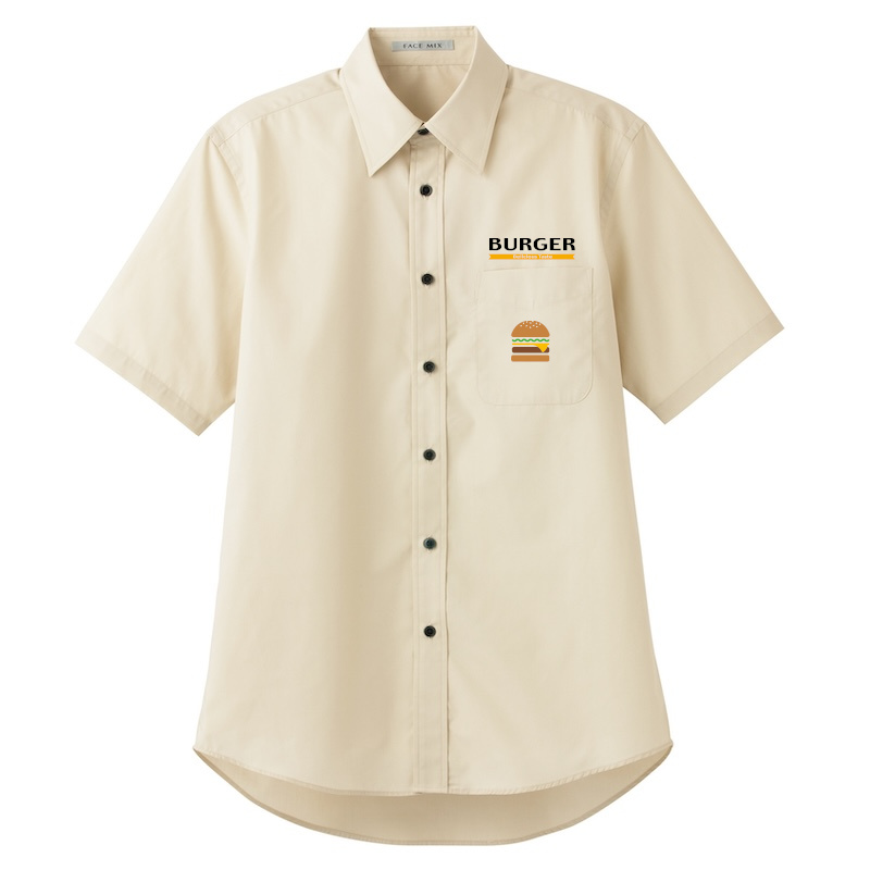 汎用性の高いデザイン: 飲食店やショップの制服、イベント用など、どんなシーンでも合わせやすいオーソドックスなレギュラーカラー仕様です。