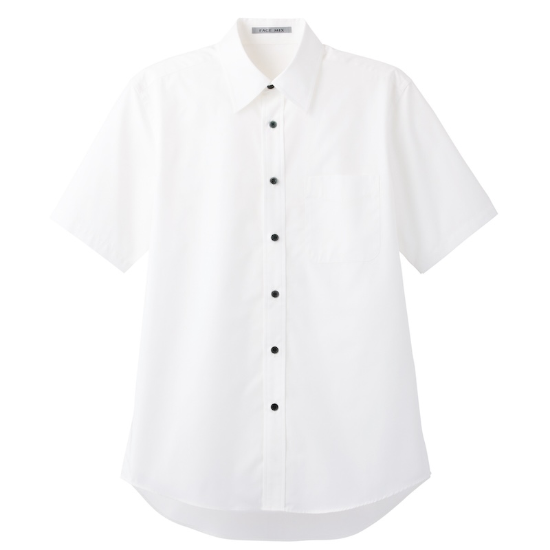 シンプルで汎用性の高い男女兼用の飲食店などの定番ユニフォームシャツです。