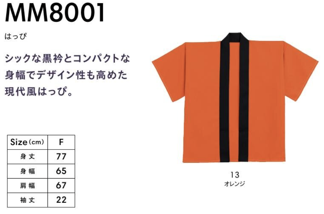 シルエット: 従来のゆったりとした法被に比べ、コンパクトな身幅に設計されており、すっきりと着こなせる「現代風はっぴ」に仕上げられています。