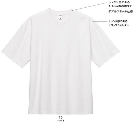 トレンド感のあるドロップショルダーと、2.2cm幅のしっかりした襟リブ(ダブルステッチ仕様)が特徴。