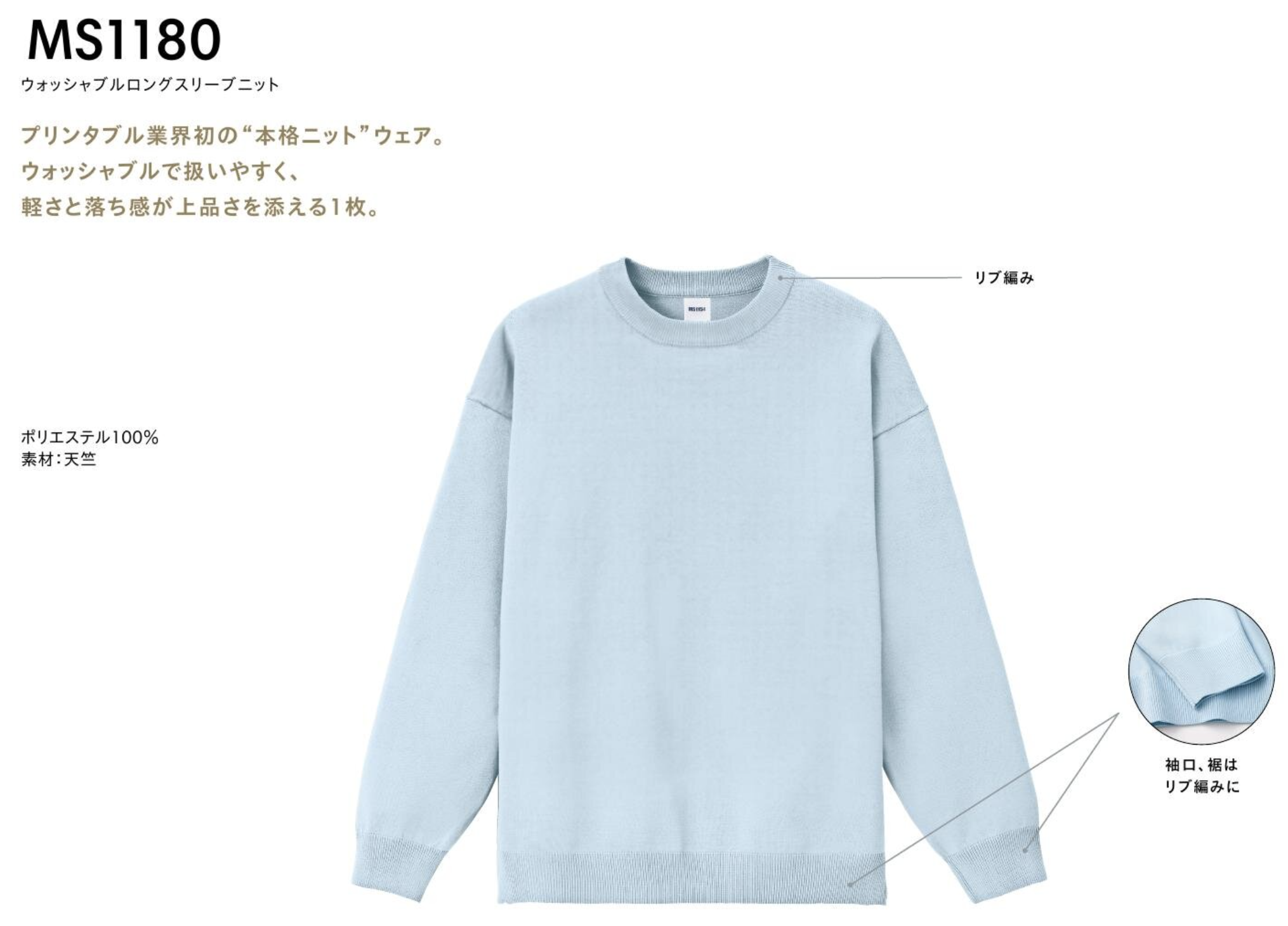 ウォッシャブルロングスリーブニット :MS1180