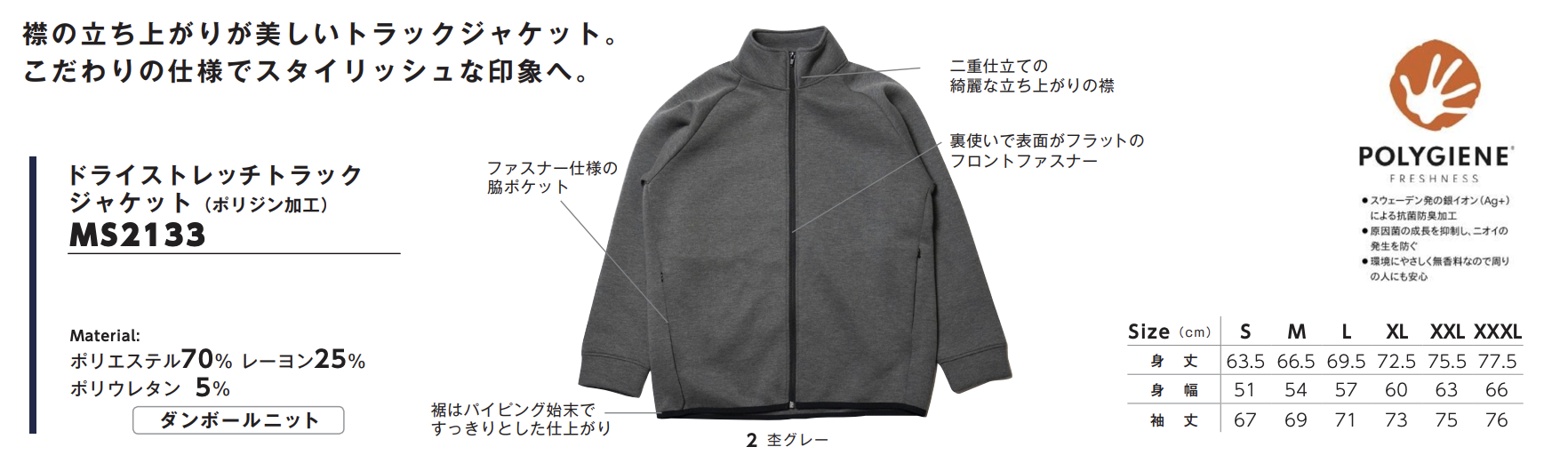 ドライストレッチトラックジャケット(ポリジン加工):MS2133