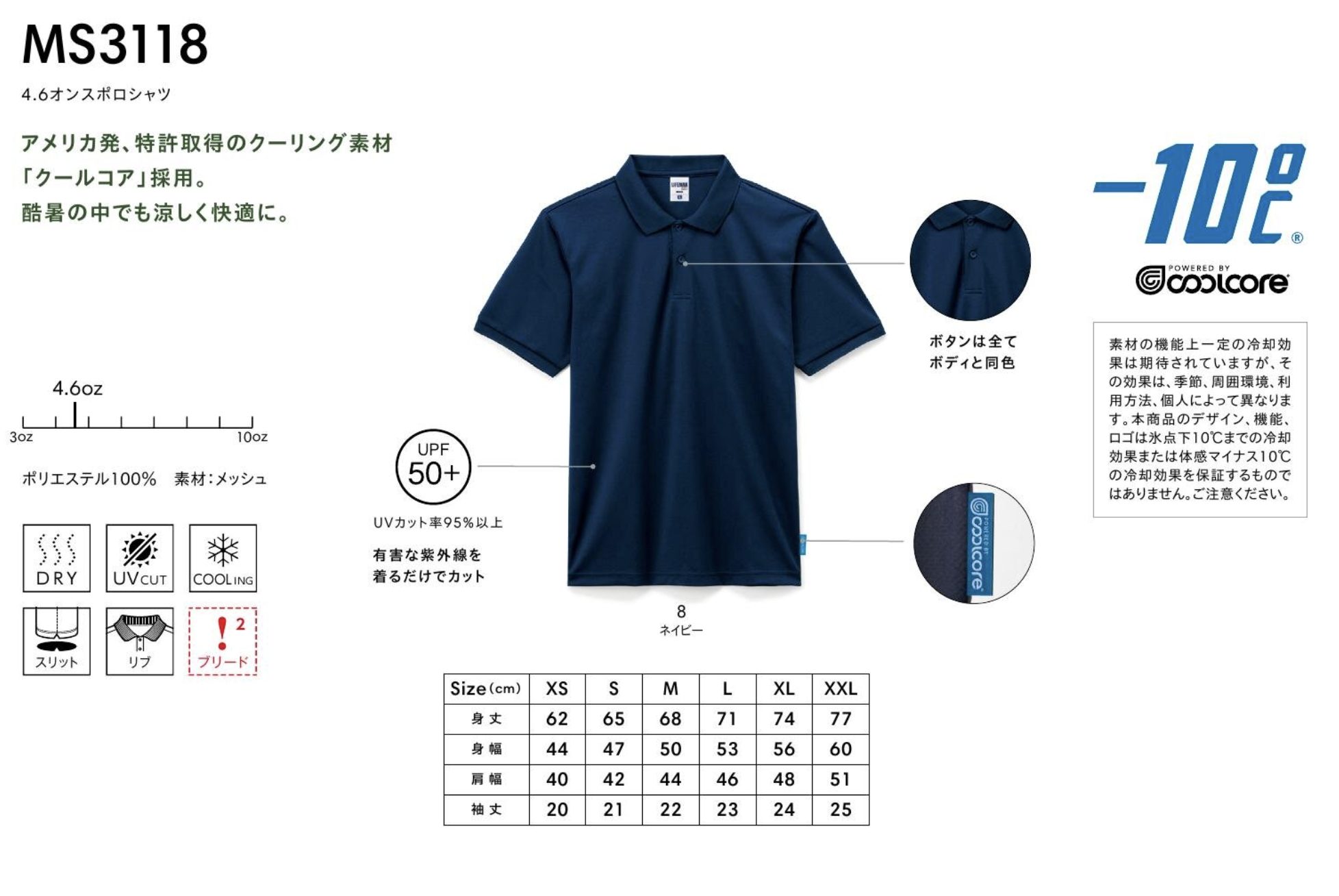 特許技術の冷感素材を採用した、真夏の屋外作業やスポーツに最適なハイテクポロシャツです。