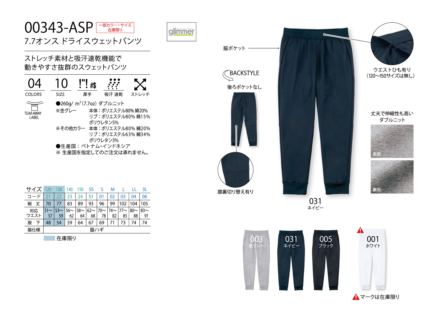7.7オンス ASP ドライスウェットパンツ:00343