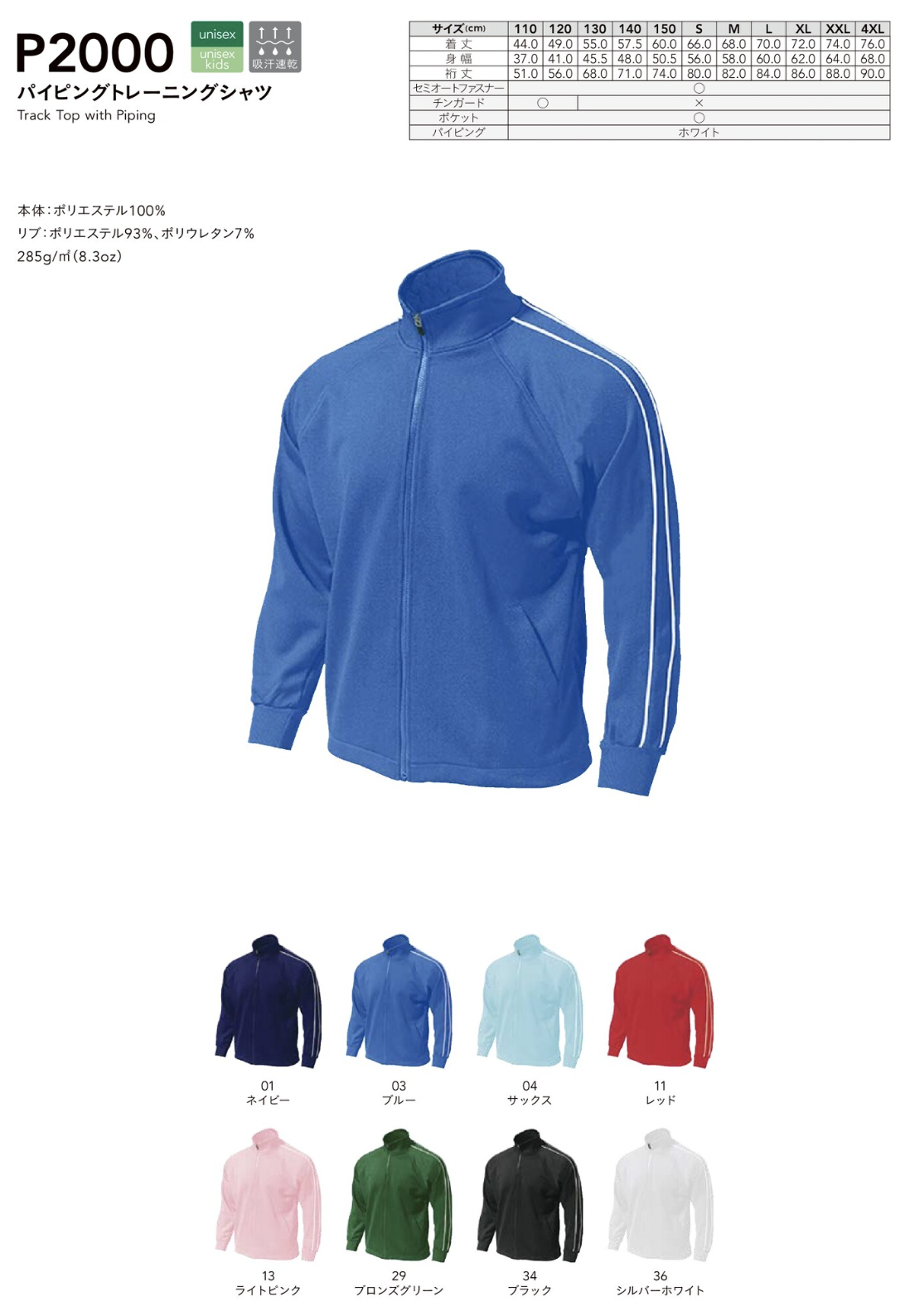 110cmから4XLまでのサイズをラインナップ。学校体育衣料として、クラブやスポーツ施設のユニフォームとして、幅広く採用いただいています。 同シリーズのジャージ(パイピングトレーニングシャツ)と合わせてどうぞ。