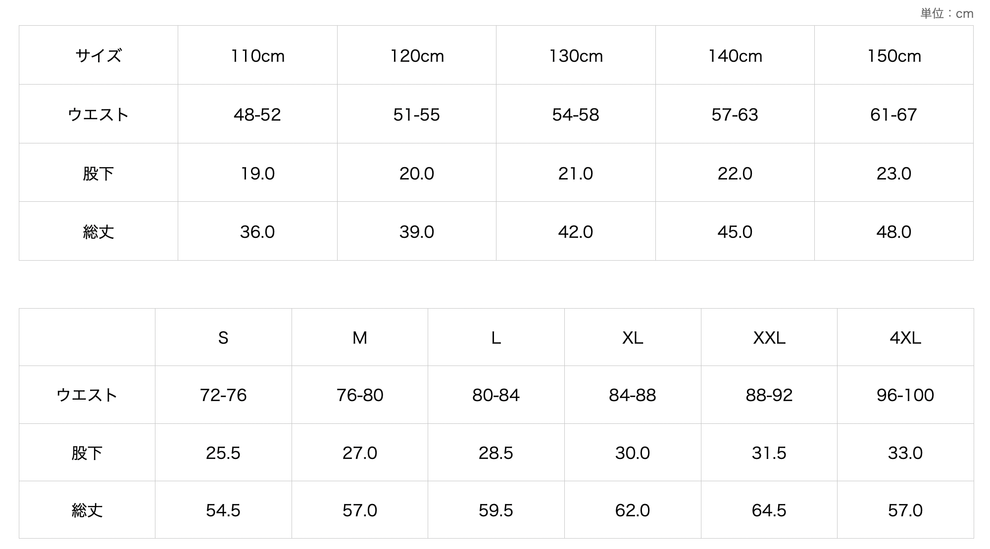 サイドポケット、ウエストゴムシャーリング+調整紐付。