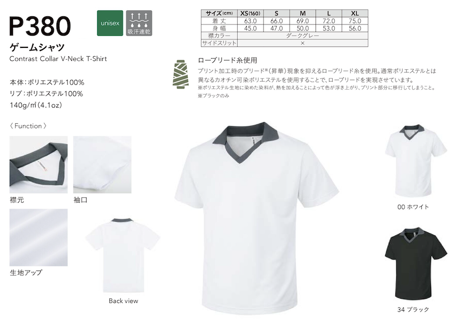ローブリード糸を使用しており、プリント加工時のブリード(昇華現象)を抑えることができます。