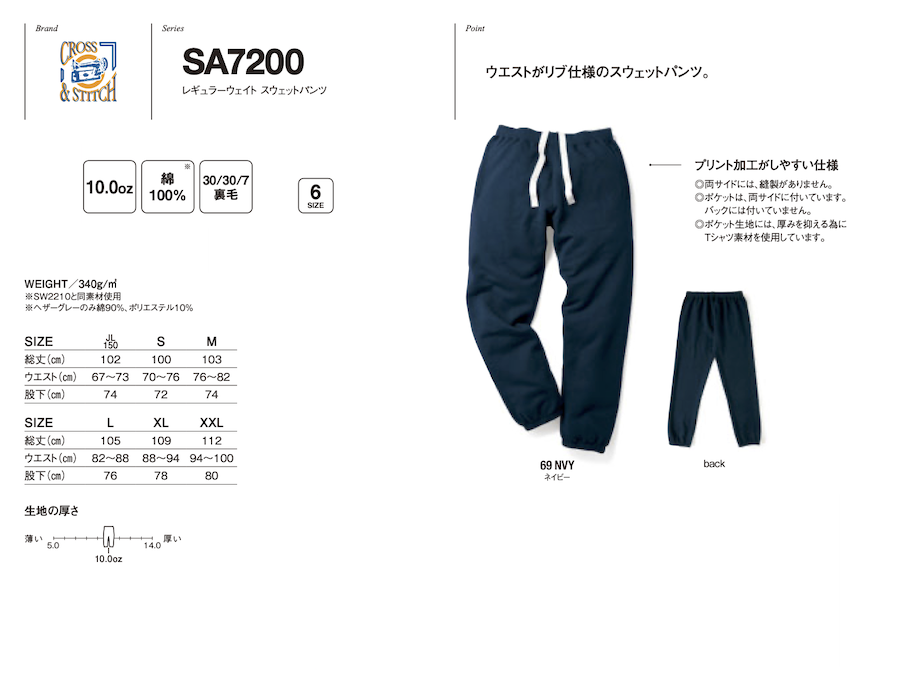 レギュラーウェイト スウェットパンツ 裏毛 SA7200