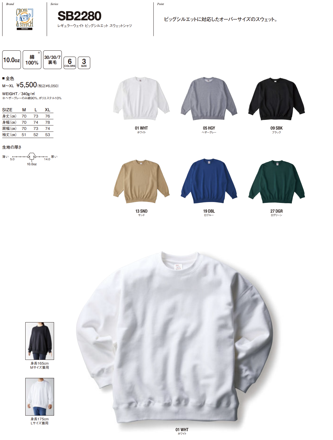 レギュラーウェイト ビッグシルエット スウェットシャツ 裏毛:SB2280