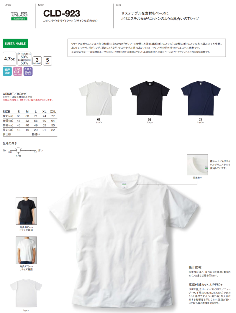 コットンライクドライTシャツ(リサイクルポリ50%):CLD-923