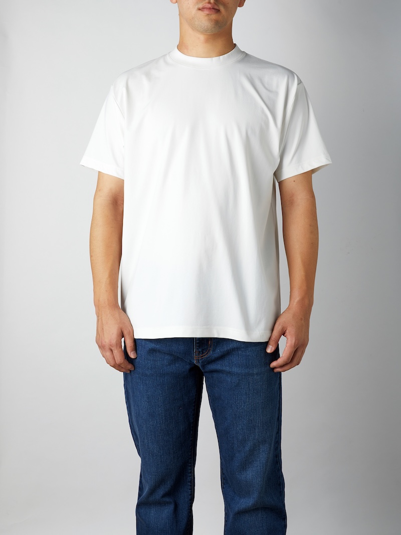 サステナブルな素材をベースにポリエステルながらコットンのような風合いのTシャツ