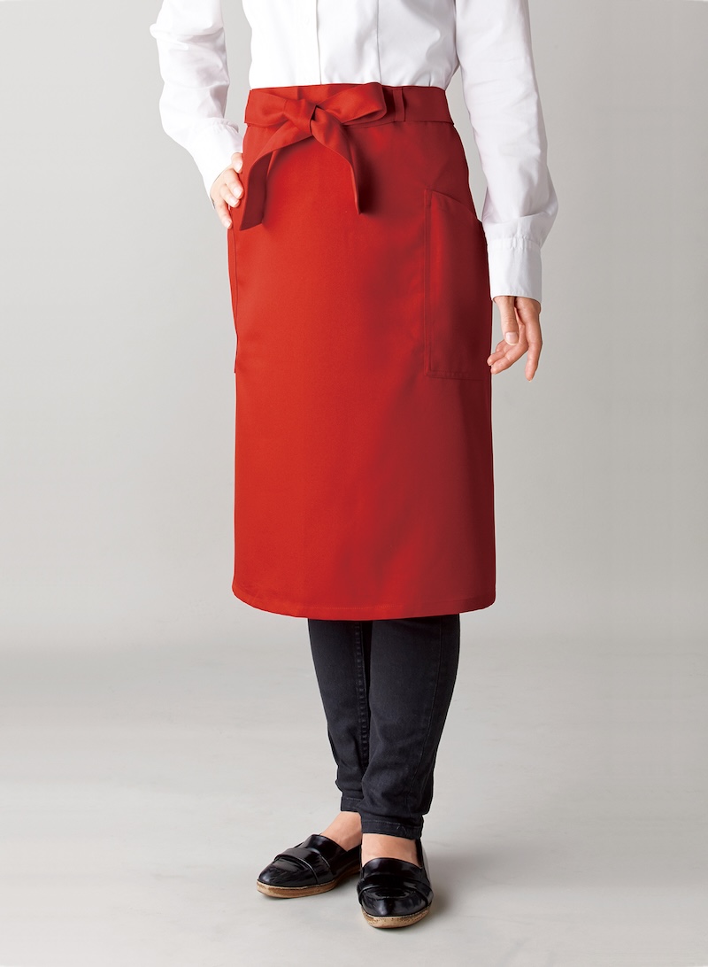 汎用性の高い落ち着いたミドル丈のハーフエプロン。